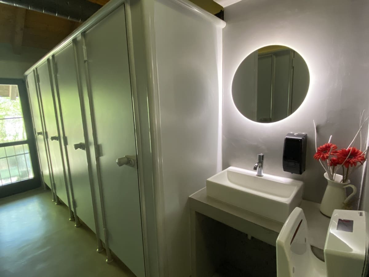 in hochwertiger Ausstattung mit Klobrillen-Desinfektion, Schaumseife und Händetrockner