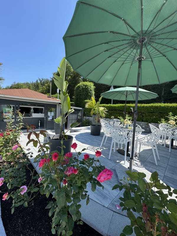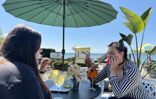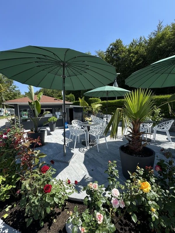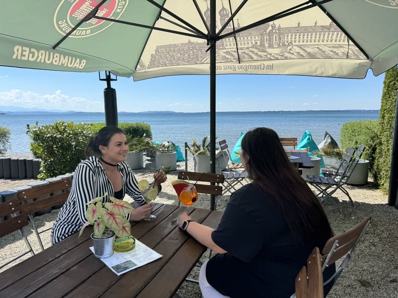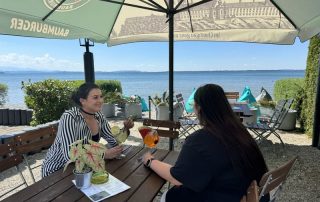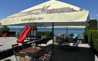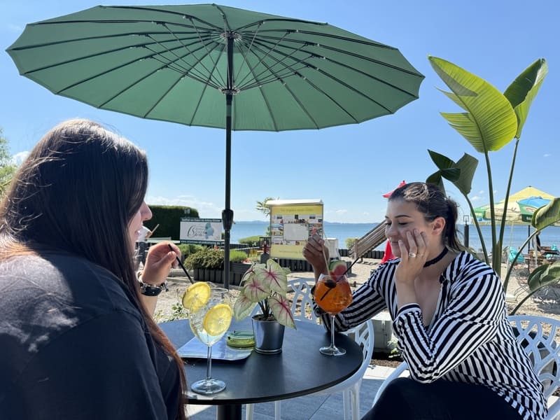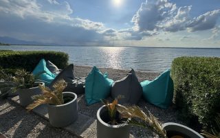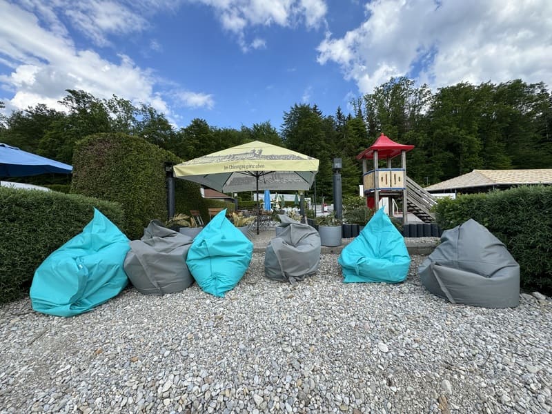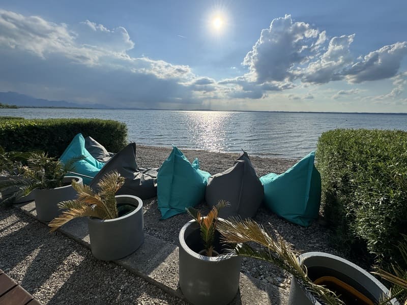 Auf der Terrasse, direkt am See oder auf unseren Sitzsäcken gemütlich sitzen und einen Aperitiv mit Blick auf den See zu sich nehmen…